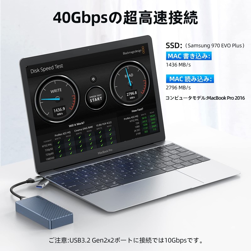 - [Ultra Fast 40Gbps] NVMe M.2 SSD external case that uses the latest USB 4.0 standard! Offers 40Gbps ultra-fast transmissions that are 4x faster than the USB 3.1 standard (10Gbps). Test Read: 2700MB/s, Write: 1400MB/s Introducing the NVMe M.2 SSD case that uses the latest USB 4.0 standard! Test Read: 2700MB/s, Write: 1400MB/s Note: To ensure the best reading and writing speed, please connect your computer to your hard disk using USB 4.0 interface or Thunderbolt 3/4 interface. When using the USB3.2 Gen2x2 interface, the speed can only reach 10GBPS