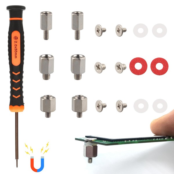 - ➤ PC Screws Set --- You will receive 1 x magnetic screwdriver, 6 x hex nuts in 3 different heights, 6 x flat head screws (4 x M2 screws, 2 x M3 screws), 6 x screw washers (4 x white M2 discs, 2 x red M3 washers).