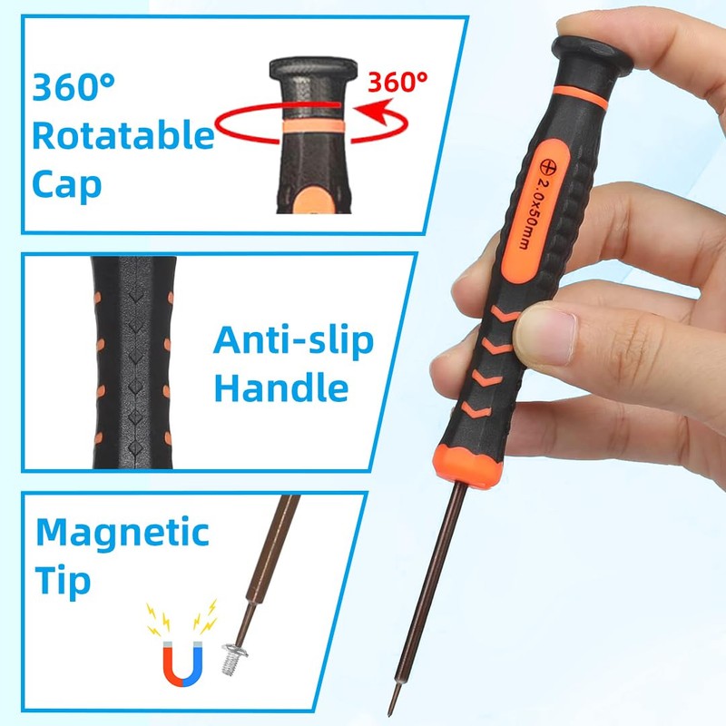 - Small Phillips screwdriver with non-slip handle, the screwdriver tip has a strong magnetic force, the bottom can be rotated 360 degrees.