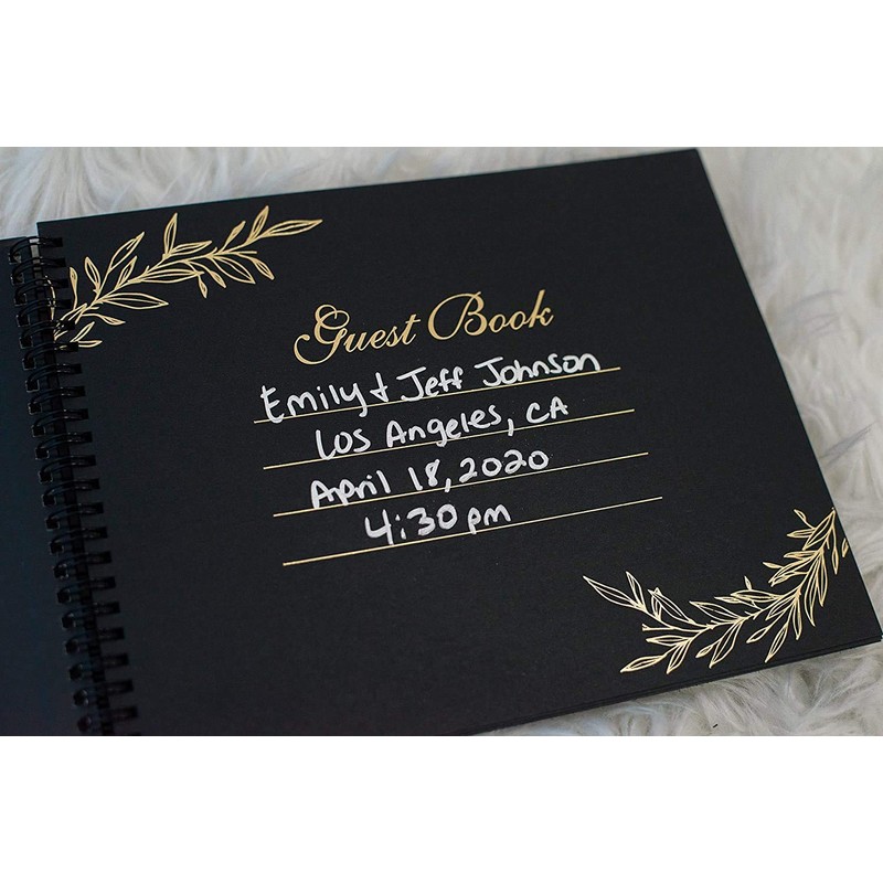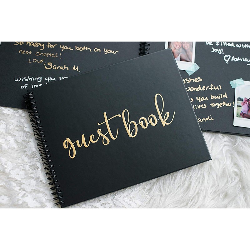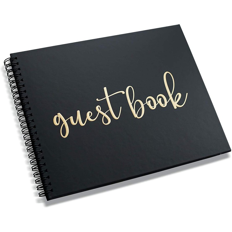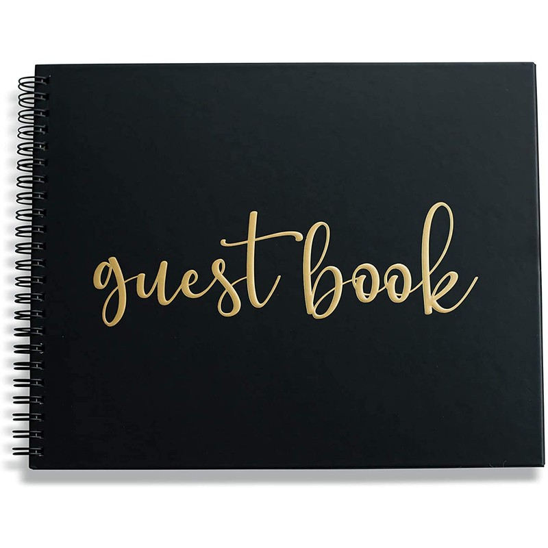 ✔️"Guest Book" embossed in gold font on front cover. Gold foil stamping on first inside page.