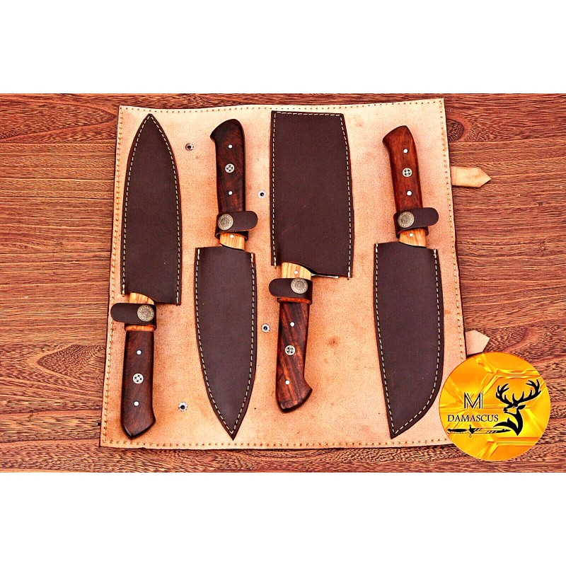 M DAMASCUS CUSTOM HANDMADE FORGED DAMASCUS STEEL CHEF KNIFEL SET KITCHEN KNIVES 1590