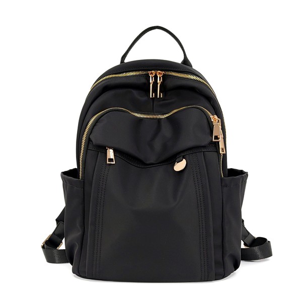 M-ioi-M Medium Nylon Backpacks for Women, Trendy Gold-Tone Hardware Everyday Backpack Purses, Casual Lightweight Water-Resistant Rucksack Daypack Travel Bags (Black)