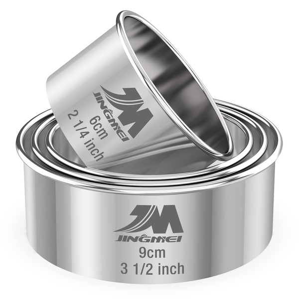 M JINGMEI M JNGMEI 4 Pieces Stainless Steel Cookie Cutter Set Biscuit Cutter 2.25inch, 2.75inch, 3.25inch,3.5inch Biscuit Plain Edge Round Cutters Sizes Shape Molds Multiple Sizes