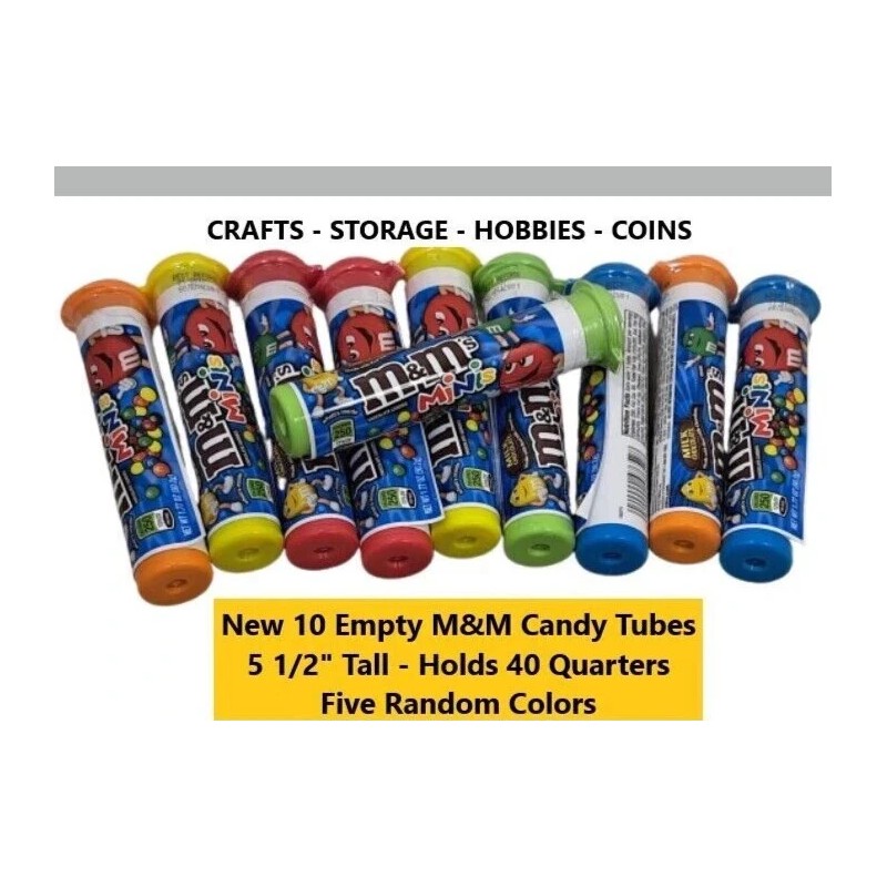 M&M's 10 EMPTY M&M's MINIS 5-5/8" STORAGE CANDY TUBES 5 Random Colors Crafts Storage