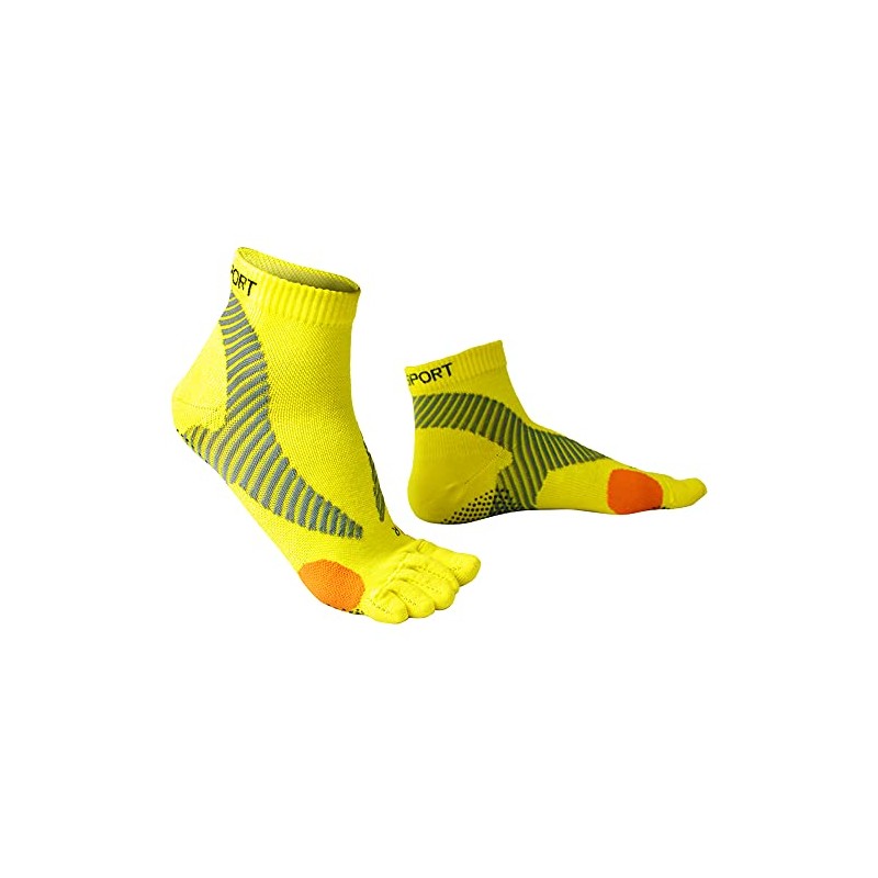 M Magic Sport Merino Wool Blend Non-Slip Toe Socks Five Finger Unisex for Running, Hiking, Cycling (Yellow, M-L)