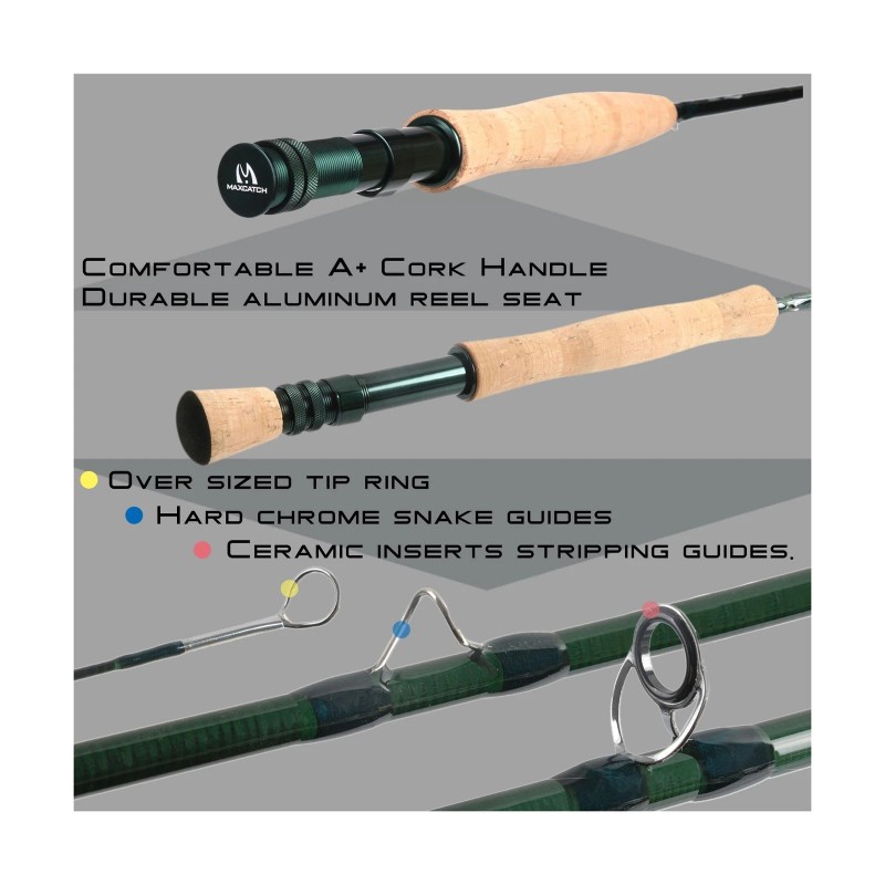 - HIGH STANDARD SMOOTH GUIDES MaxSelect Stripping Guides and Ultra lightweight Hard Chromed stainless steel snake guides and Over-sized tip loop for smoothest longer casting. PURE CORK HANDLE and REEL SEAT Pure A+ Contoured Cork Handle for comfortable gripping and also helpful for casting. High Density machined aluminum reel seat with two up-locking rings for reliable fixing of the reel foot. And will tolerate saltwater environment.