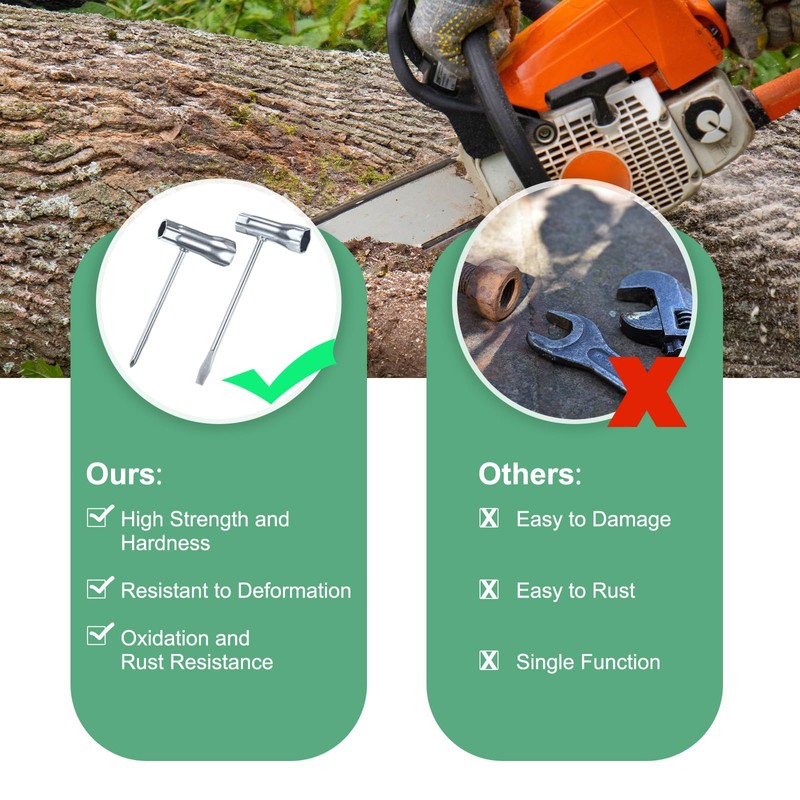 • [Multipurpose Use] - Suitable for chainsaw maintenance, repair, and adjustments. Used for dismantling bar nuts, fuel tank caps, spark plugs, and adjusting chain tension.