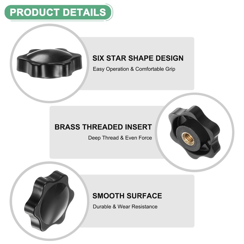 - [Durable Star Shape Knobs] - Made of well plastic and brass, the star clamping knob offers good strength and durability. It is corrosion-resistant, heat-resistant, and insulated, ensuring a long service life for reliable performance