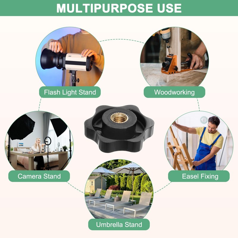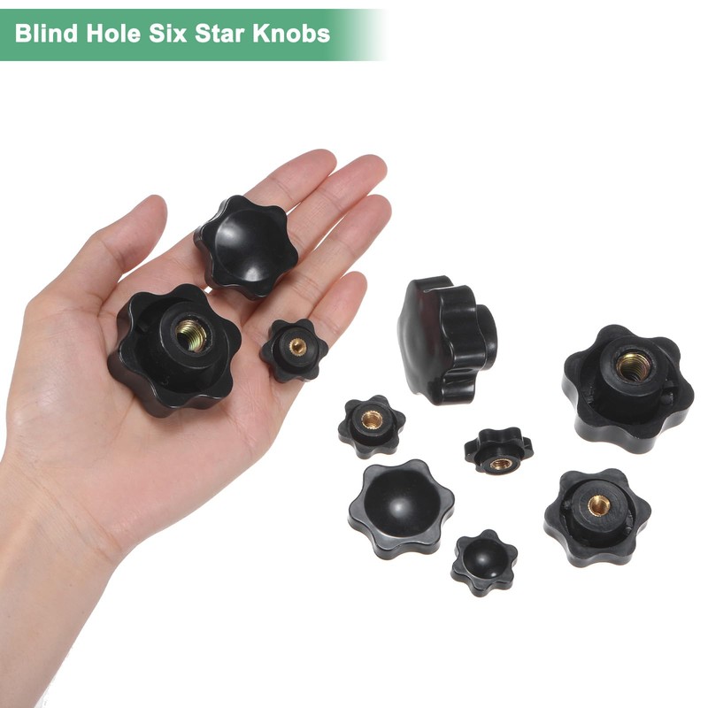 - [Multipurpose Use] - These female star knobs are good for various applications requiring quick adjustments, such as woodworking, machinery, equipment assembly, lathes, drill presses, sawing machines, packaging, printing equipment, computer monitors, light fixtures, and patio umbrella brackets, etc