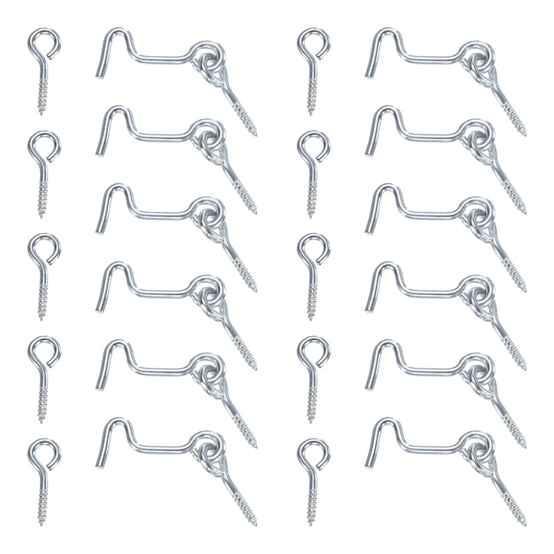 - [Size & Package] - 10-Pack x Hook Eye Latch with eye bolt; Material: Iron/Carbon Steel; Color: Silver; Total Length: 38 mm/1.5 Inch; Hook and Eye Length: 31 mm/1.22 Inch; Window hook wire diameter: 3 mm/0.12 Inch; Window hook ring diameter: 6 mm/0.24 Inch