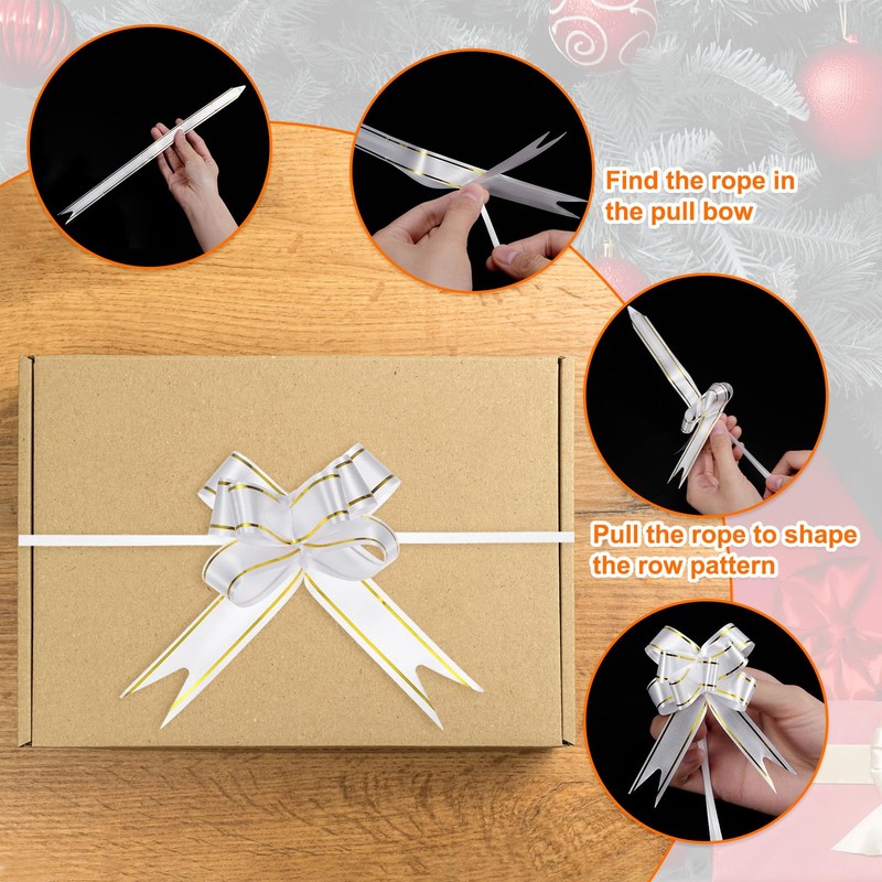 1. The wrapping bows for presents are crafted from PP plastic, which is waterproof, tear-resistant, and deformation-proof, ensuring long-lasting durability.