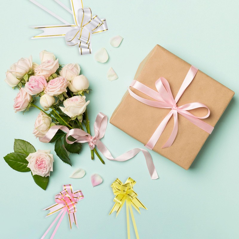 - [Size & Package] - 100pcs pull bows for gift baskets that open up into 9.5cm butterfly pattern bows, providing an elegant touch to your gift wrapping.