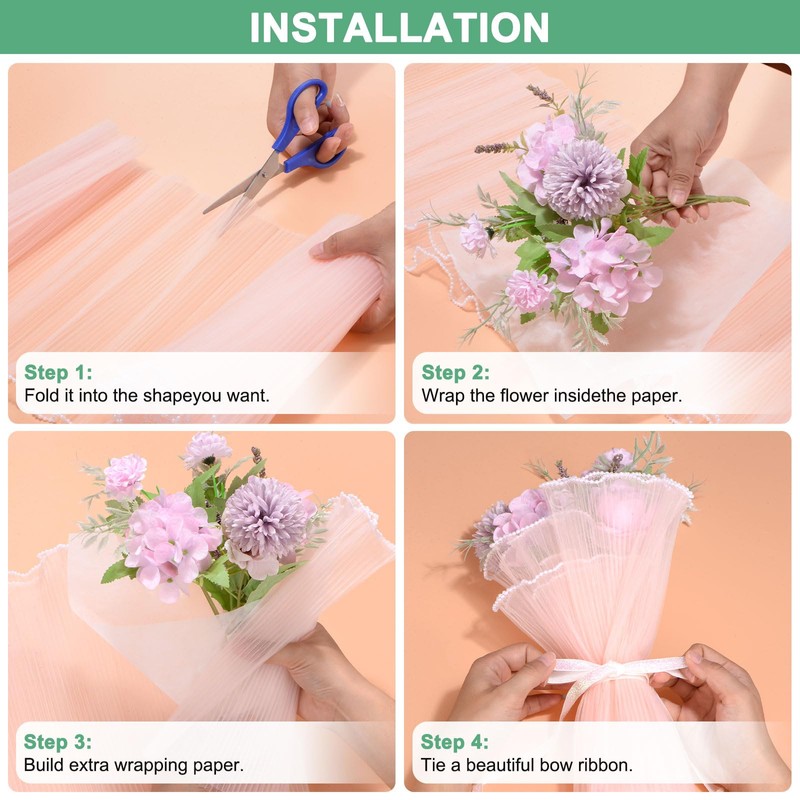- [Advantage] - Can be cut and the translucent design, does not hide the color of the flowers. This flower wrapping paper offers versatility in creating beautiful floral presentations. The waterproof feature ensures that the paper protects the bouquet from moisture and maintains its freshness.