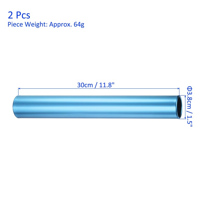 2 Pack of Relay Stick, which length is 30cm / 11.8 inch; Surface Finish: Oxidation Plating; Piece Weight: Approx. 64g; Outer Diameter: 3.8cm / 1.5 inch. The color is blue.