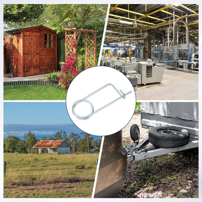 - [Multipurpose Use] - The brooch shape pin is used to fix hook pins and other cotter pins for locking. It is used for hooks, hanging devices, ladder stabilizers, short combination wrenches, car bumper pins, and other places where safety pins are fixed in farms, lawns, and gardens