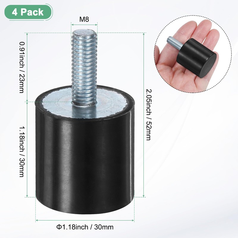 M METERXITY 4-Pack Rubber Mounts D30mmxH30mm Male Vibration Isolators Cylindrical Shock Absorber W M8 x 23mm Studs for Air Compressor/Car/Pump/Boat/Garage Motor/Bobbins Rubber Isolators