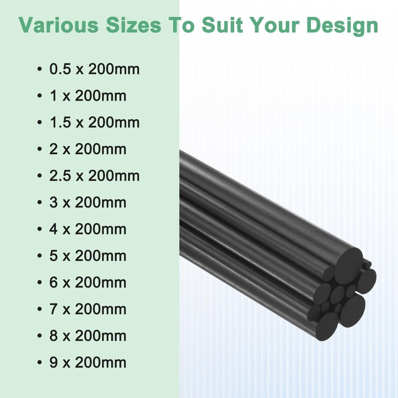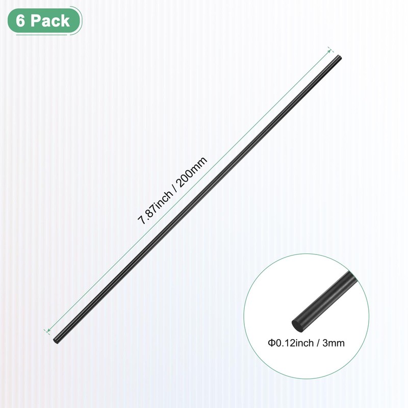 - [Size & Package] - The size of the solid carbon fiber rod is 7.87 x 0.12 inches/200 x 3mm (L x Dia), and can be cut to any length to suit your work needs. The package contains 10 carbon fiber rods