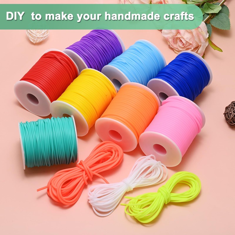 Our tubing rubber cord is suitable for making all kinds of accessories, such as beads, pendants, etc., making unique bracelets, necklaces, earrings, can also be used for packaging and fixing various items, such as fixed flower bouquets, gift boxes of ribbon. It can also be used for DIY crafts, such as woven hangers, headbands, mobile phone chains, etc.