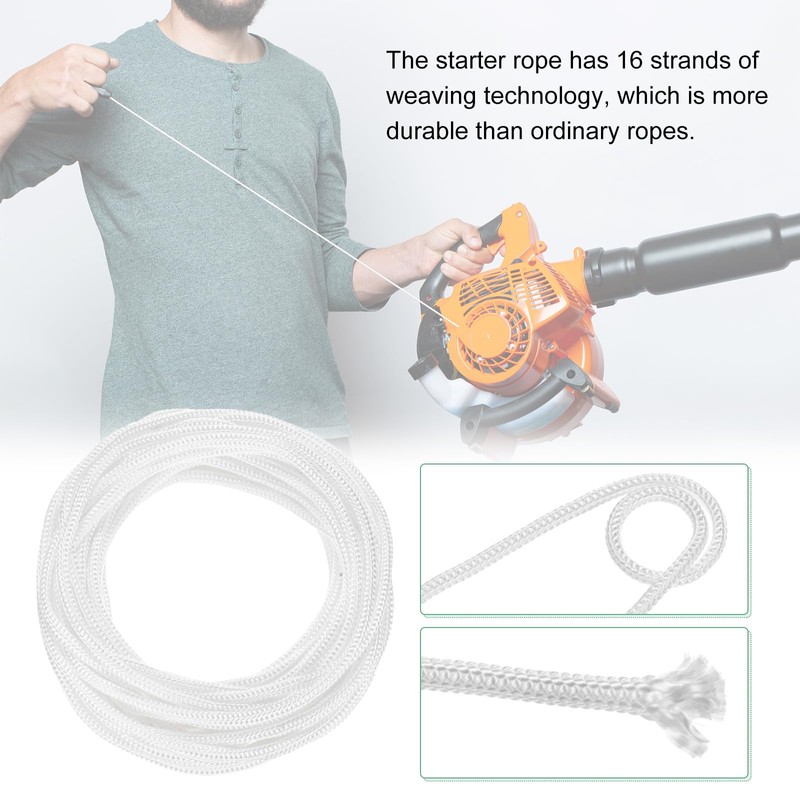 - [Size & Package] - Material: Nylon PP Polyester; Color: White,Black; Diameter: 6mm/0.24 Inch; Length: 10m/32.8 Feet; Package Includes: 1-Pack x Pull Starter Rope(16 shares) with 2pcs handles