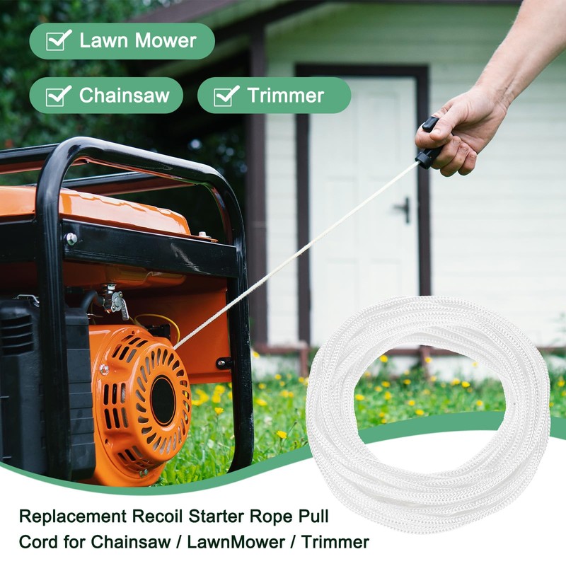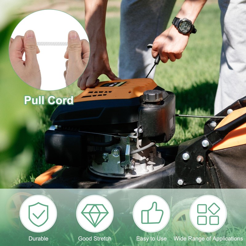 - [Multipurpose Use] - This lawn mower pull cord is universal for various applications. They can be used for gasoline engine-powered Lawn Mowers, String Trimmer, Hedge Trimmer, Chainsaw, Brush Cutter, Lawn Edger, Water Pump, Snowblower, Mini-tiller, Cultivator, Log Splitter, Chipper Shredder, High-Pressure Washer, etc