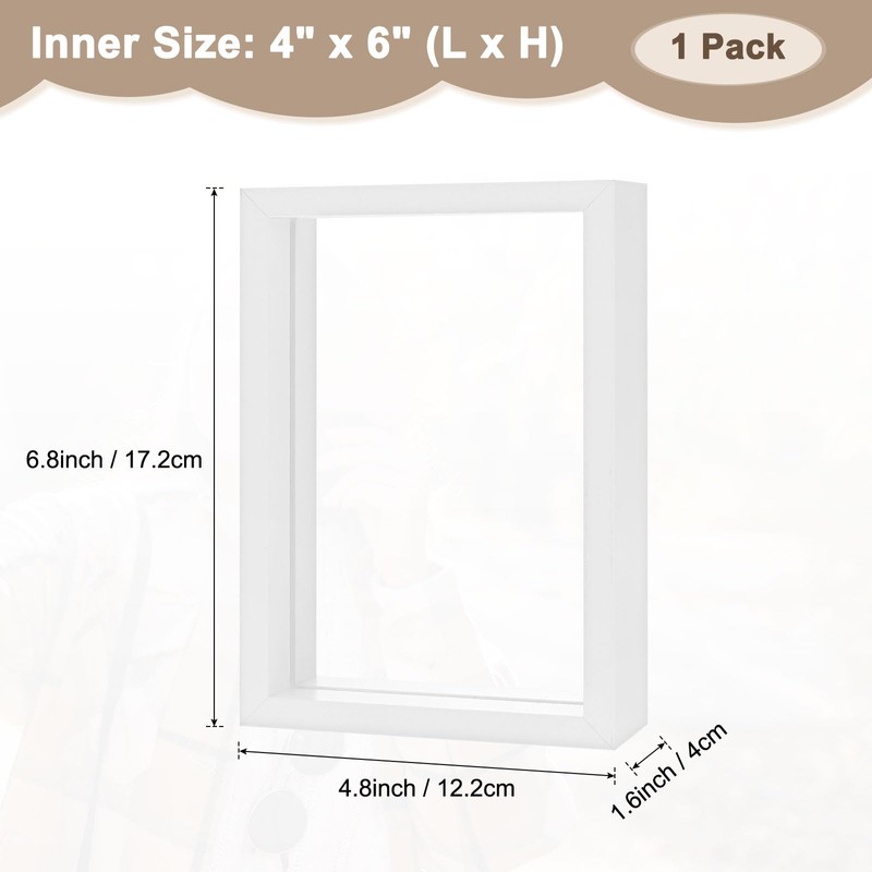 M METERXITY Wooden Pressed Flower Frame, 4 x 6 Inch Double Acrylic Floating Picture Frame for Dried Flowers/Tabletop/DIY/Handicrafts [White]
