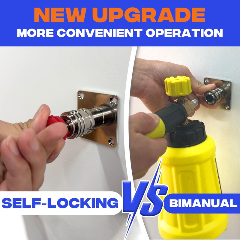 - 𝗦𝗲𝗹𝗳-𝗟𝗼𝗰𝗸𝗶𝗻𝗴: Our foam cannon mount is designed with an innovative self-locking feature, taking convenience to new heights. With a simple push, you can automatically and swiftly connect the nozzles. Enjoy the convenience and efficiency of single-handed operation like never before.
