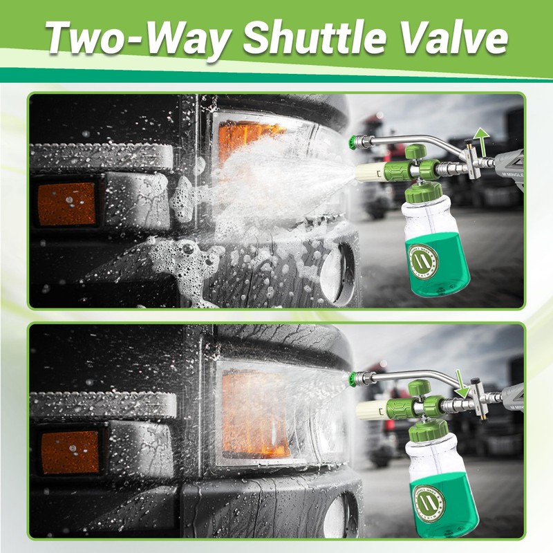 - Fácil de usar: cambia sin esfuerzo entre la espuma y la boquilla con un simple ajuste de la válvula de lanzadera. No hay necesidad de quitar o reemplazar las boquillas. Esta varita de lavado eléctrico ahorra tiempo y aumenta la eficiencia.