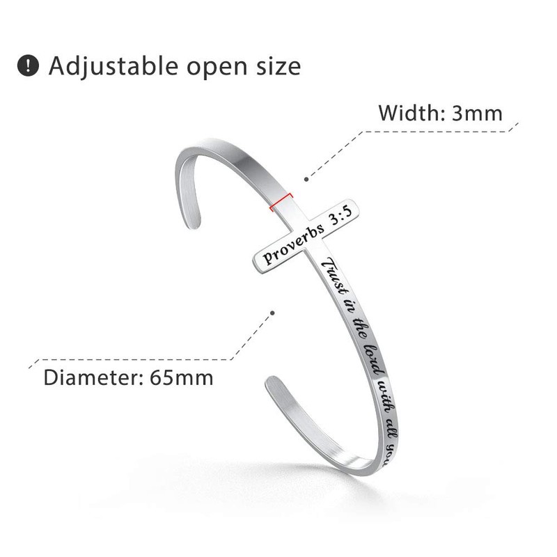 - CROSS BRACELET: Religious bracelet engraved with “Trust in the lord with all your heart”, bible verse bracelets is perfect jewelry gifts for women, friends, daughter, granddaughter, niece, sister, coworker and even yourself.
