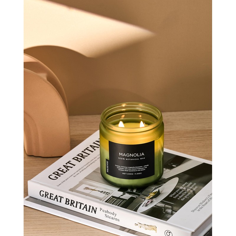 M&SENSE Magnolia Jasmine Spring Scented Candle, 11.6oz 70 Hours Long Lasting Clean Non Toxic All Natural Soy Wax Candle for Relaxing & Stress Relief, 2 Wick Romantic Fragrance Gifts for Home Decor