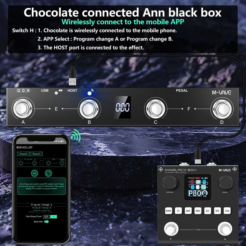 M-VAVE M-VAVE Chocolate Plus Wireless MIDI Foot Controller 4 Buttons BT Rechargeable, APP Control