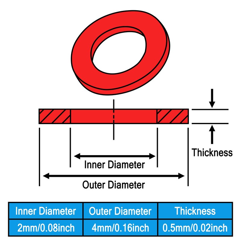 - 【SIZE】Inner Diameter:2mm/0.08inch,Outer Diameter:4mm/0.16inch,Thickness:0.5mm/0.02inch.