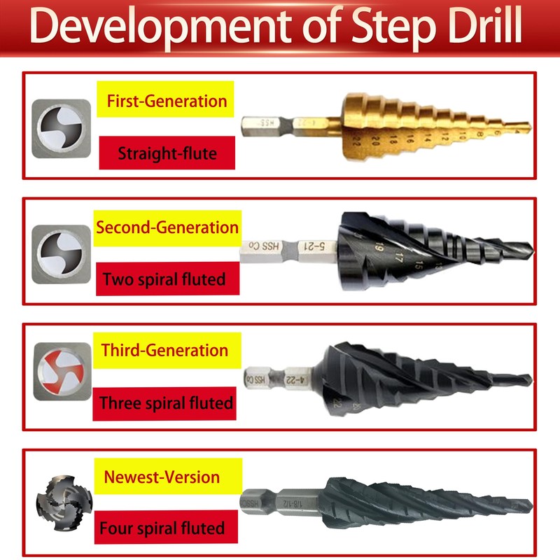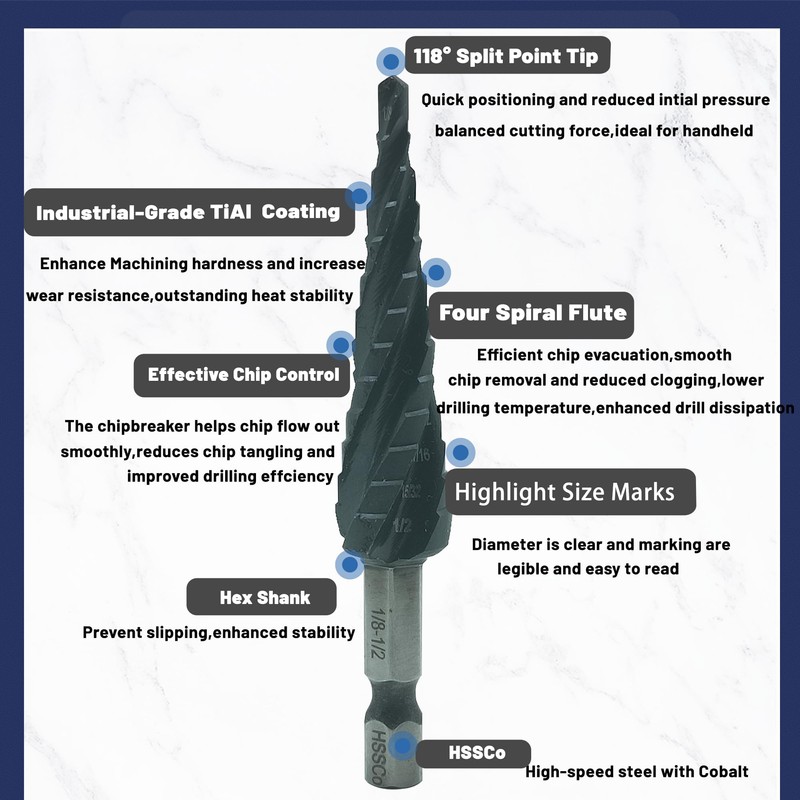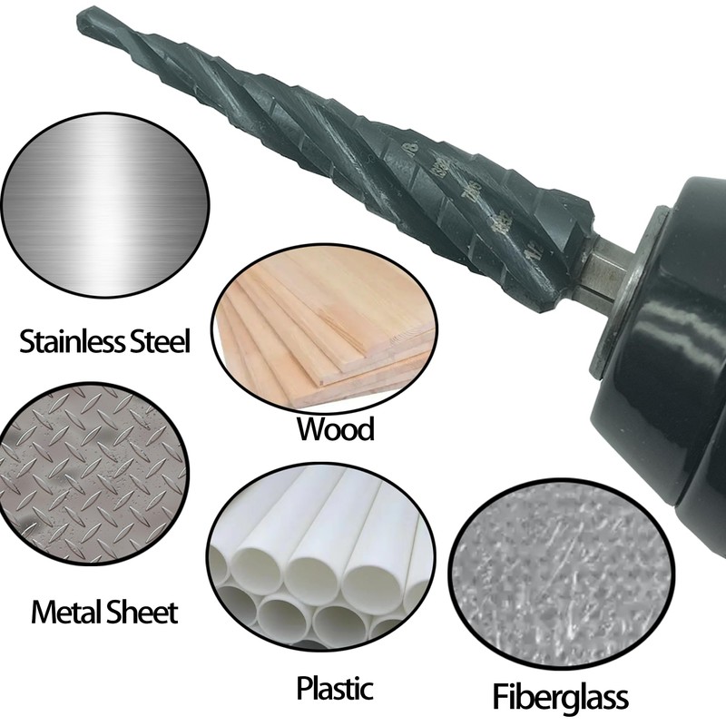 - Four Spiral Flute:Provide greater stability, faster speed, and higher precision, which are not available in ordinary spiral step drills