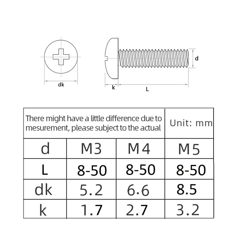 • 【Pan head machine screws】: Phillips drive. Metric machine screws for universal use