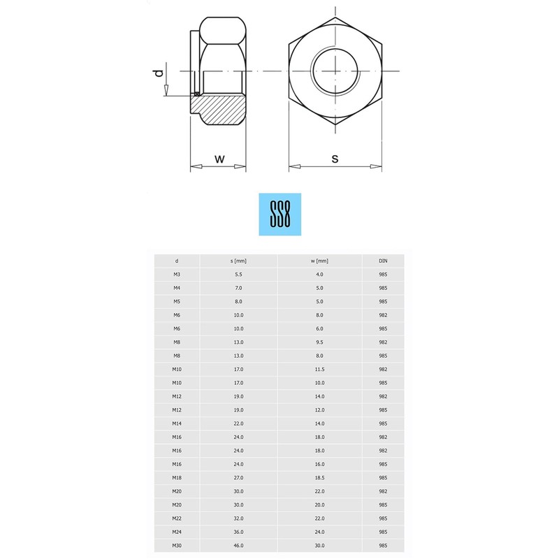 - Thread Protection and Reusability - The nylon insert not only enhances the locking functionality but also protects the mating threads from damage. This means you can use these lock nuts multiple times without compromising their effectiveness. Standards: DIN 985 / ISO 7040 / UNI 7473