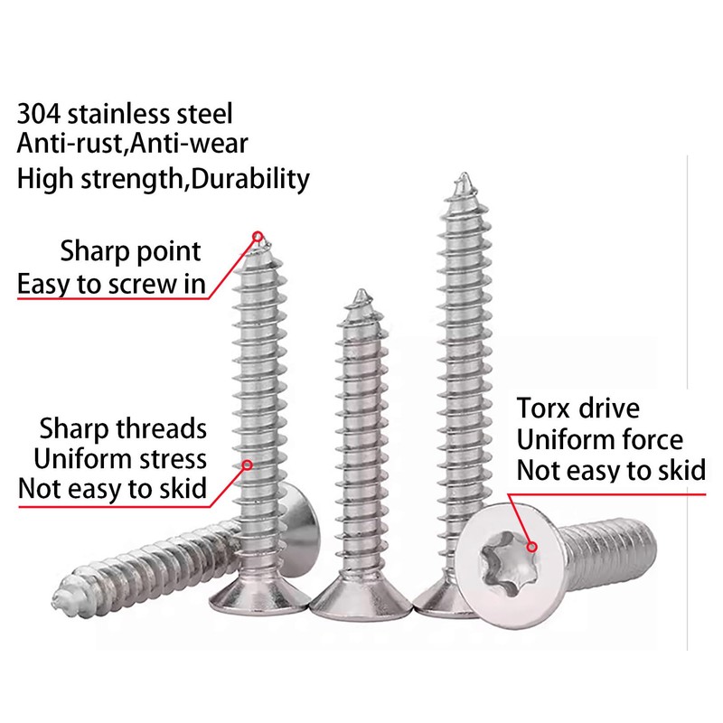 - Material: wood screws are made of high-quality 304 stainless steel and can be used indoors and outdoors. High strength, anti-corrosion, anti-rust.