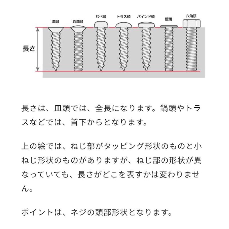 [Features] The screw is used to tighten the screw itself in a place where the holes are drilled into the other material, eliminating the hassle of twisting work, and since it is not rattle, it is difficult to loose. The holes of the holes may vary depending on the thickness and type of the screw, so please be careful. [Shape] The pitch is roughest and pointed to the tip, and the thread is standing up to the tip. The pointed point of the tip has a guide for positioning the center of the hole and helps to catch the bite. Compatible materials: Mainly suitable for thin plate steel (0.05 inch (1.2 mm) or less) hard boards and wood.