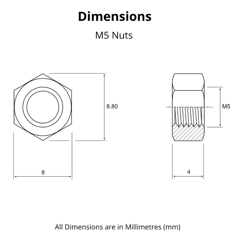 • M5 Nut Dimensions - (5mm Internal Diameter)