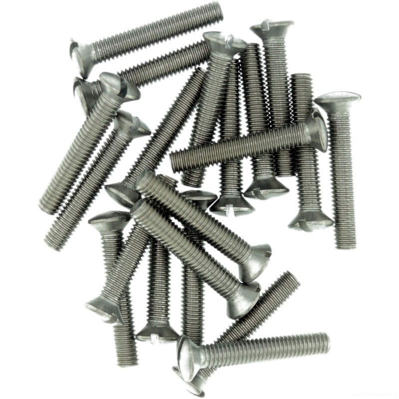 M6 (6mm x 60mm) Slot Raised Countersunk Machine Screw (Bolt) - Stainless Steel (A2) (Pack of 20). A fully-threaded bolt (Machine Screw), with a slightly-rounded head housing a straight screwdriver slot, designed to fit almost flush with surfaces with only the crown sitting proud.: DIN: 964 ISO: 2010 AFNOR/NFE: 25-124 BS: 4183 UNI: 6110 ANSI/ASME: B18.6.7M Size: M6 Pitch: 1 Length: 60mm Thread: Metric Coarse Tensile Strength: 50 Drive: Slot Head: Raised Countersunk