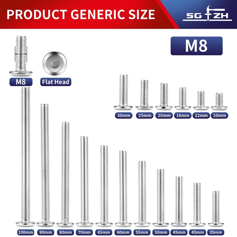 - RUGGED AND DURABLE - SG TZH Flat Head Hex Socket Cap Screws Bolts made of high-quality 18-8(304)Stainless Steel,which has higher corrosion resistance and anti-rust effect than ordinary bolt, longer service life, not easy to damage, more solid.