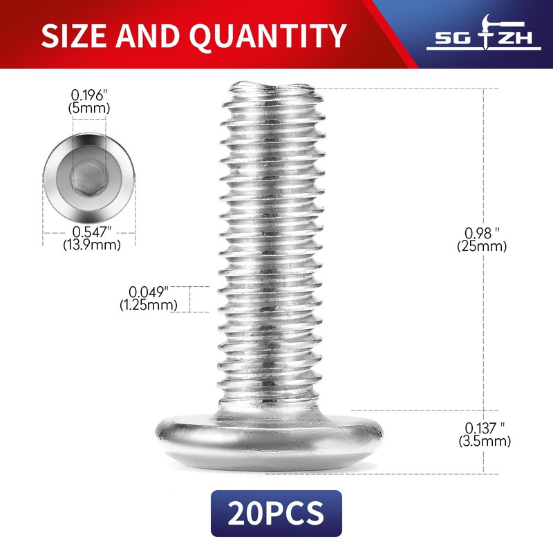 - Product Size - Thread Diameter: 8mm; Thread Pitch: 1.25mm; Screw Length: 25mm. Head Diameter: 13.9mm. Please check specfication by picture 2