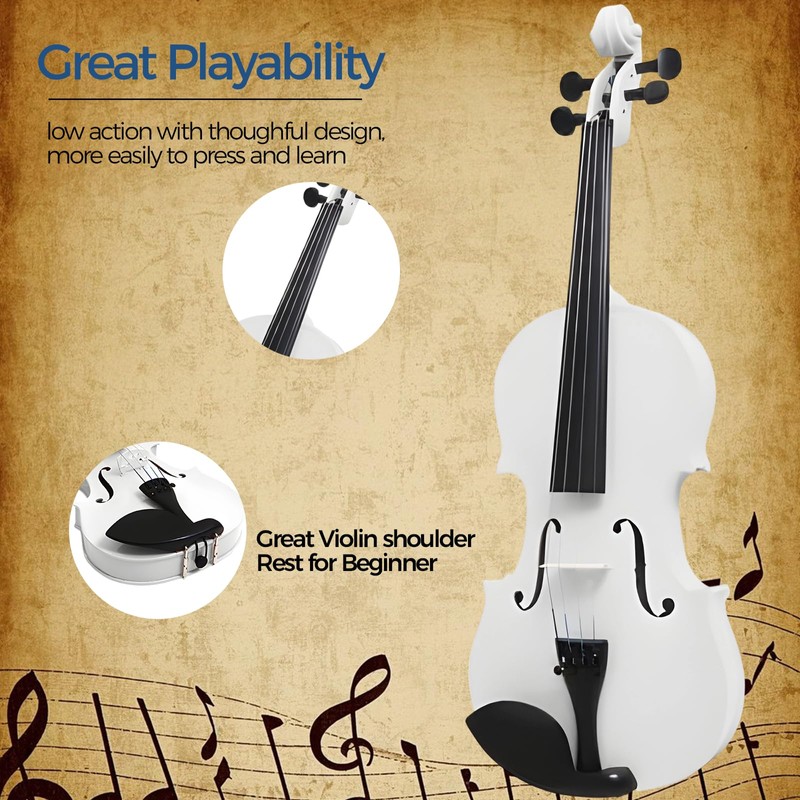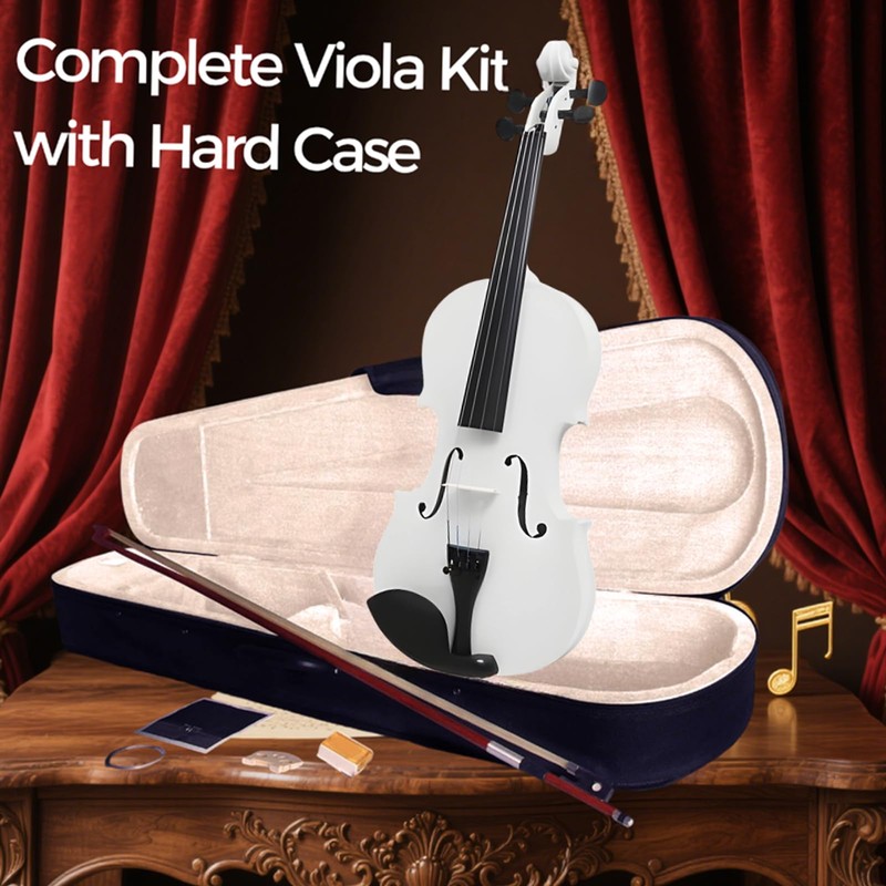 MA 16-Inch Solid Wood Viola in White Finish - Handcrafted 4/4 Size Acoustic Viola for Students & Adults with Case, Bow, Rosin, Bridge & Strings