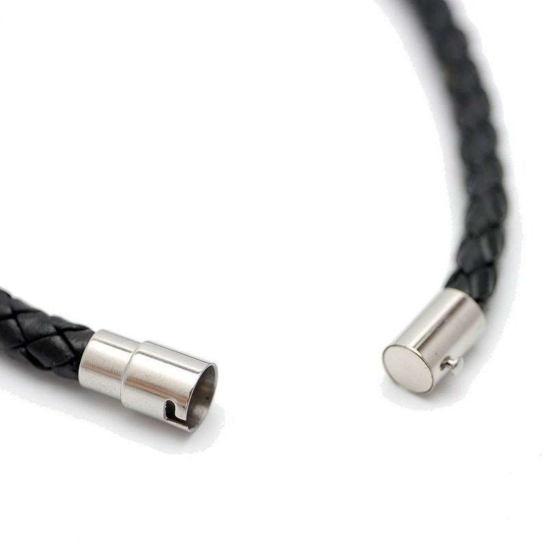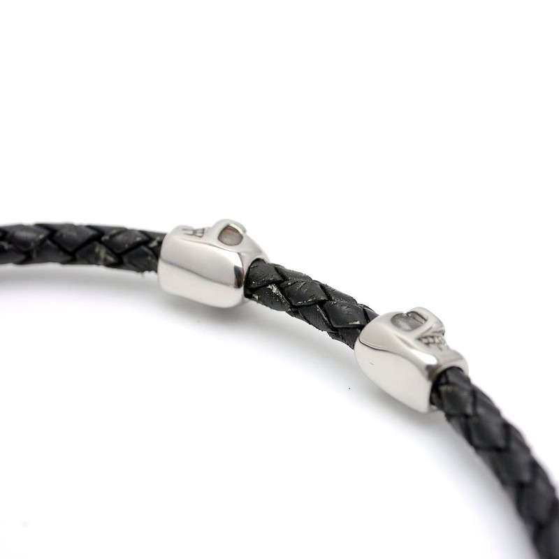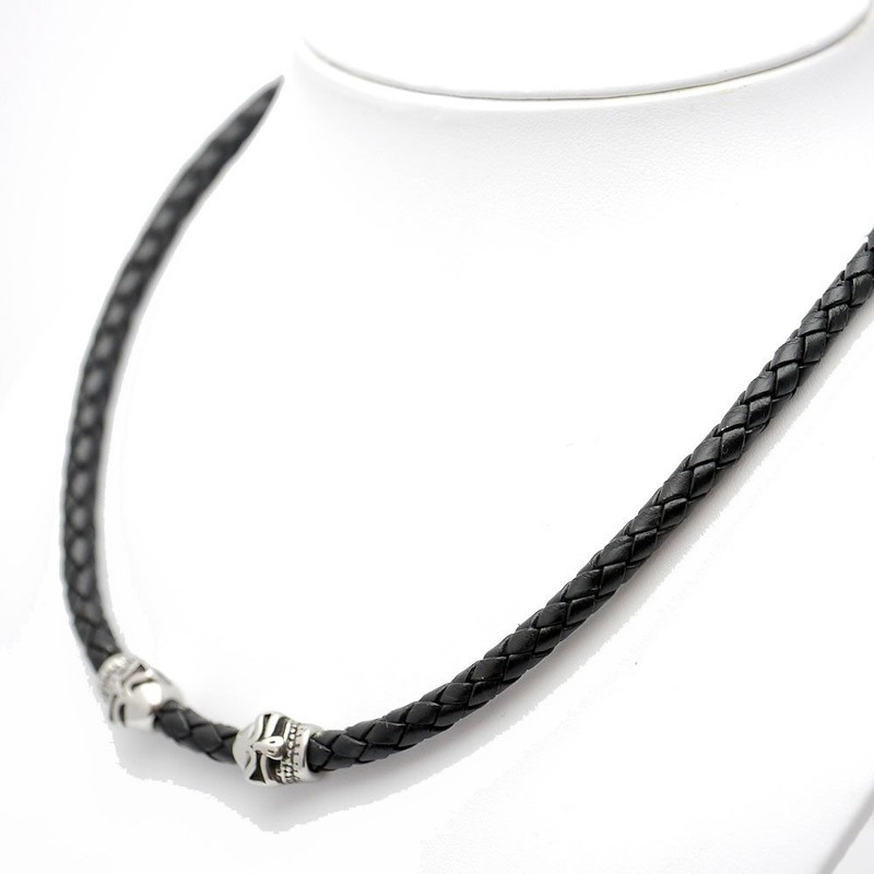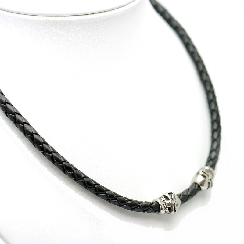 [シルバーワン] ma ダブル スカル レザーチョーカー マグネット式 黒色 編み込み[5mm 46cm] ステンレス ブラック メンズ