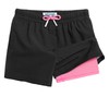 MaaMgic Boys Swim Trunks with Compression Liner Toddler Stretch Quick Dry Swim Shorts Quick Dry 2 in 1 Beach Shorts,Black Pink,Small(8)