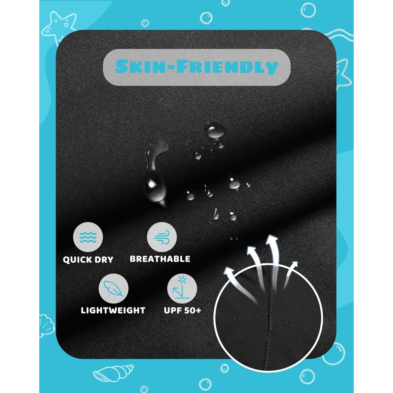 - Comfortable: Made of 90% Polyester & 10% Spandex, the smooth polyester fabric is lightweight, comfortable and quick dry. Comfy 4-way stretch fabric offers great mobility for kids while swimming or other beach activities.