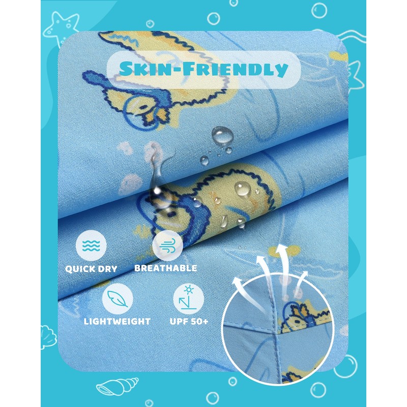 - Comfortable: Made of 90% Polyester & 10% Spandex, the smooth polyester fabric is lightweight, comfortable and quick dry. Comfy 4-way stretch fabric offers great mobility for kids while swimming or other beach activities.