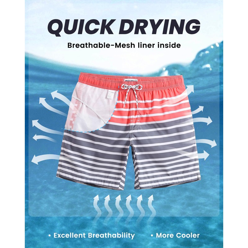 MaaMgic Mens Quick Dry Striped Swim Trunks With Mesh Lining Swimwear Bathing ...