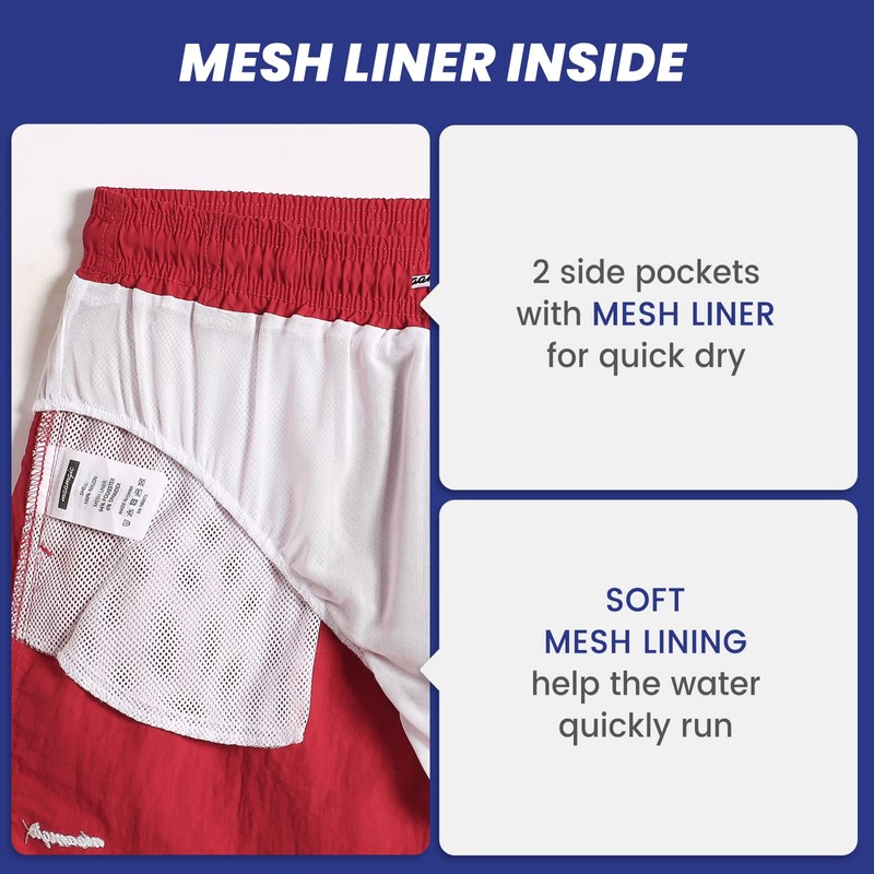 • Men's swim trunks with mesh liner: they are made of quick dry fabric with elastic waist and you could adjust your waistline freely. Arc design on leg opening gives your legs more space and comfortable feeling during the activities.