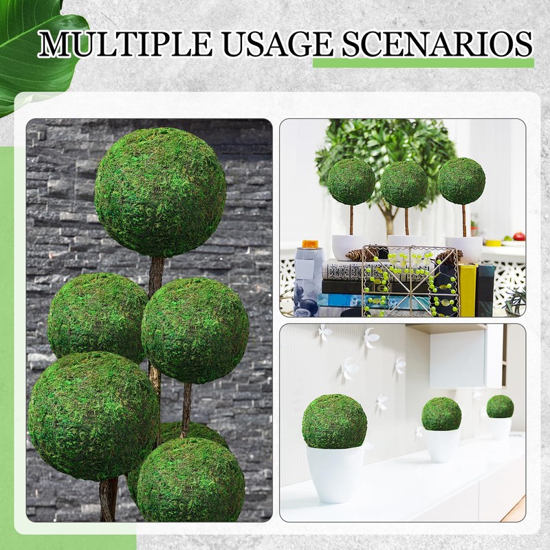 - Large Green Moss Balls: each green moss balls are about 5.5-6.3 inches (14-16 cm), set of 4; Add these moss-covered balls to container, tray, or floral arrangement to get a natural look in your home