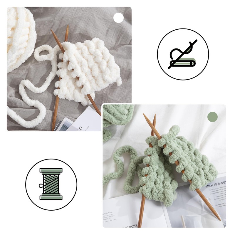- 【Lightweight Material】 Thick chenille yarn is great for super chunky knitting! The fluffy and soft material mantains a stylish appearance while feeling extremely lightweight, making it easy to take wherever you go!