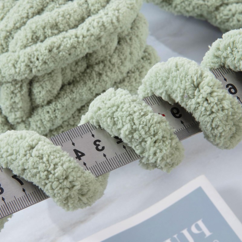- 【Jumbo Yarn for Crocheting】 Each skein weighs 8 oz/ 226.8 g and the length is 31.7 yds / 29 m. The diameter of this Chenille Chunky Yarn is approximately 3/4". Knitting Gauge: US 50 (25mm), 2.5 sts - 2.5 rows = 4” (10cm) Crochet Gauge: US 50 (25mm), 2.5 sc - 2.5 rows = 4” (10cm)